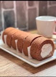 Experience a burst of flavor with our purple yam roll cake, a delightful and colorful dessert.